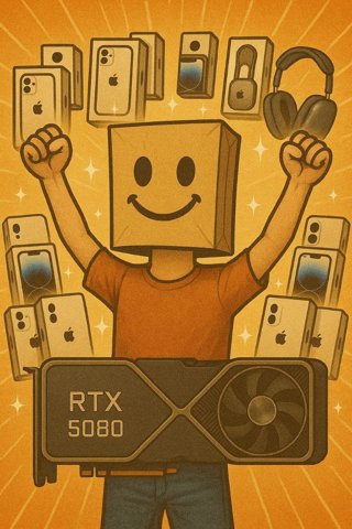 Успейте получить **айфоны, эйрподсы и даже топовую видеокарту NVIDIA RTX 5080:**
