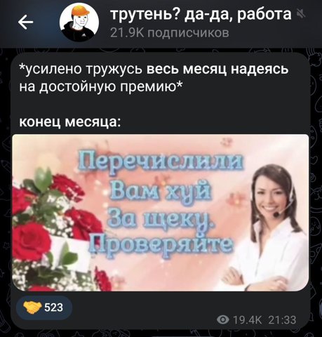 [подписан(а) твой коллега ](https://t.me/+ohu53_FeHUA3NzQy) 🦌 **стебёмся с рабочих будней здесь: **[**@rabbotyga **](https://t.me/+ohu53_FeHUA3NzQy) только не показывай начальнику..